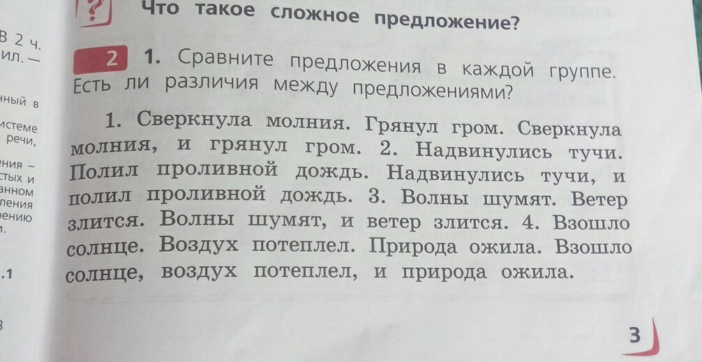 2. Сколько простых предложений в каждой группе составляют сложные предложения? Сравните интонацию простого и сложного предложения. Когда появляется интонацию законченого предложения?
