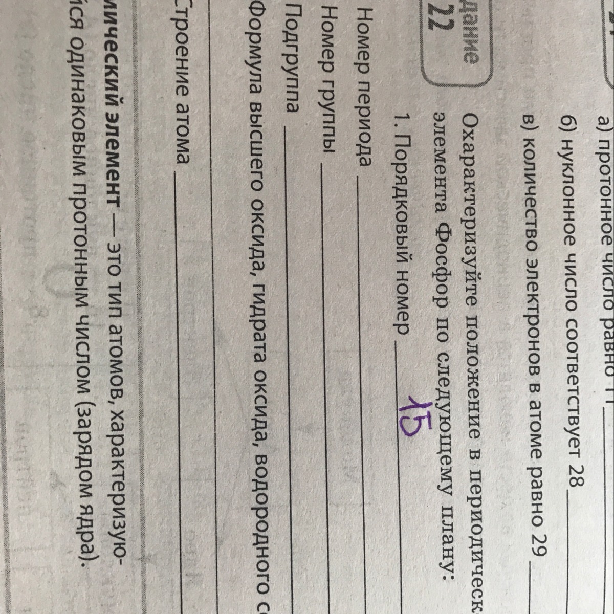 имеет 3 энергетических слоя т.к находится в 3 периоде на последнем энергетическом уровне 5 электронов на среднем(2) 8 электронов и на первом 2 электрона