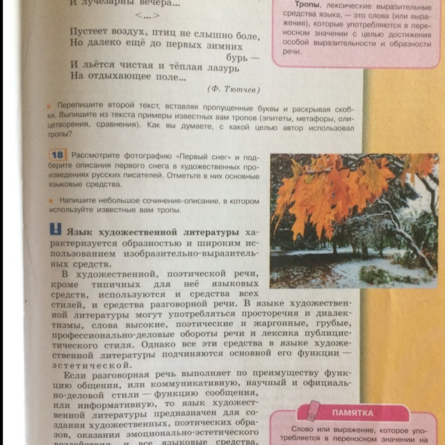 Вот и наступила осень, деревья стоят словно девицы в пёстрых платьях. Неожиданно выпавший первый снег покрыл будто тонкой ,белой шалью. Деревья подмёрзшие ,опустившие ветви ещё не успевшие сбросить золотую листву, стоят как заколдованные. Всё вокруг стало мрачным,кажется что злой волшебник остановил праздник красок. Только лишь снег лежащий в парке искрится и завораживает .Скоро снег скроет всё без остатка, и парк погрузится в долгий сон.