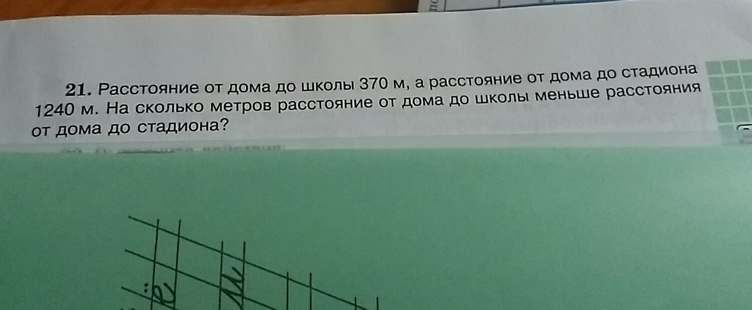 расстояние от дома до школы 370 м а расстояние от дома до стадиона 1240 м на сколько метров расстояние от дома до школы меньше расстояние от дома до стадиона