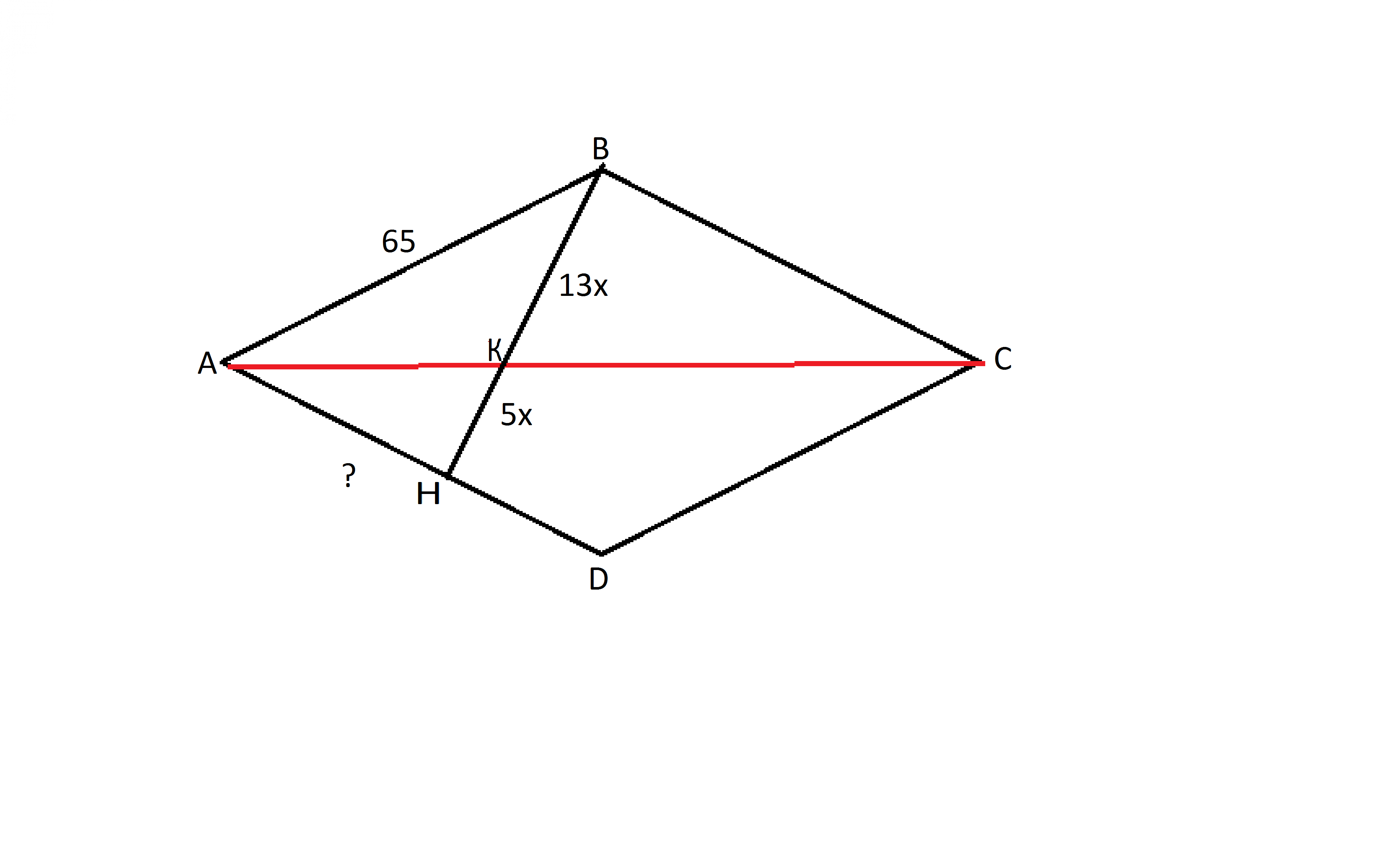 помогите мне пожалуйста,не могу понять.Диагональ ромба делит его высоту, проведенную из вершины тупого угла, на отрезки, которые относятся как 13: 5. Найдите эту высоту, если сторона ромба равна 65 см.