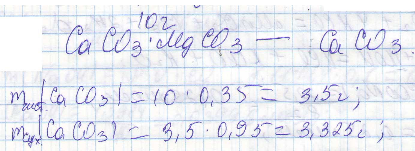 Определить кол-во (по массе) и активность каустического доломита получаемого из 10 т. природного доломита, имеющего влажность 5% и содержаещего 35% CaCO3
