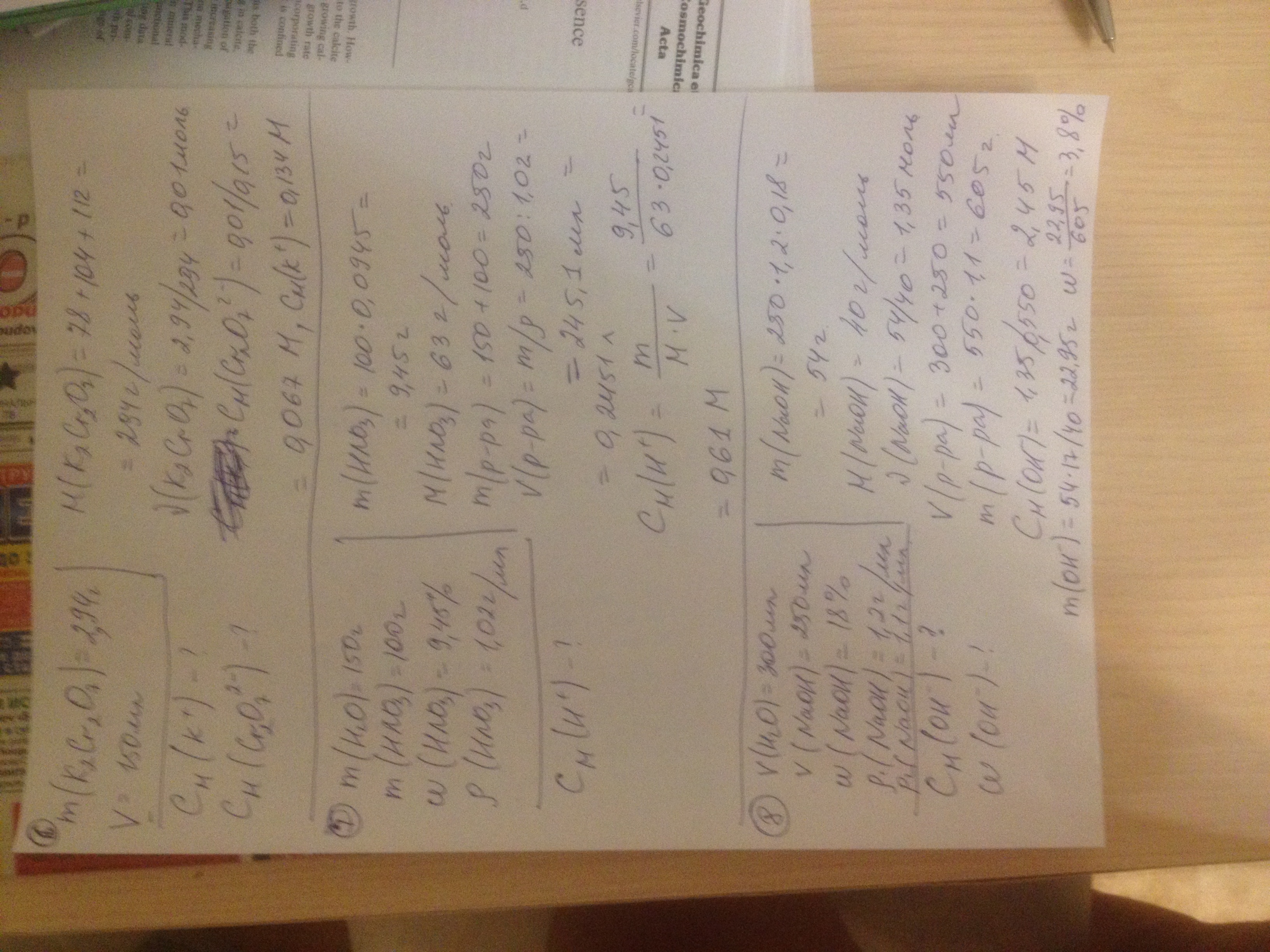6. В воде растворили 2,94 г. дихромата калия. Объём раствора довели до 150 мл. Найдите молярные концентрации ионов в образовавшемся растворе.