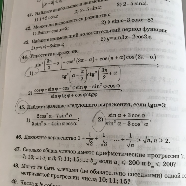 45 (2) Найдите значение выражения (sinα+3cosα) / (sin³α - 3cos³α) ,