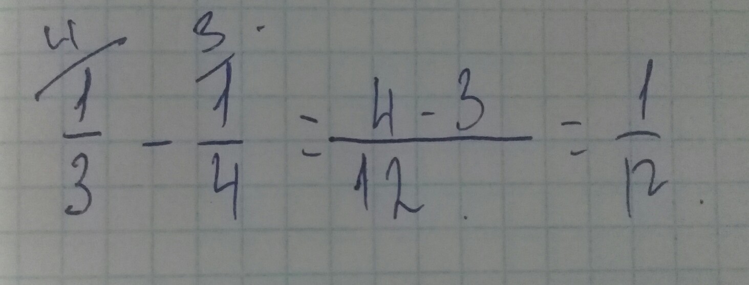 1) Находим общ. знаменатель здесь это 12 так как число 12 делиться ина 3 и на 4
