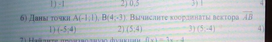 даны точки А(-1;1). В(4;-3) вычислите координаты вектора АВ