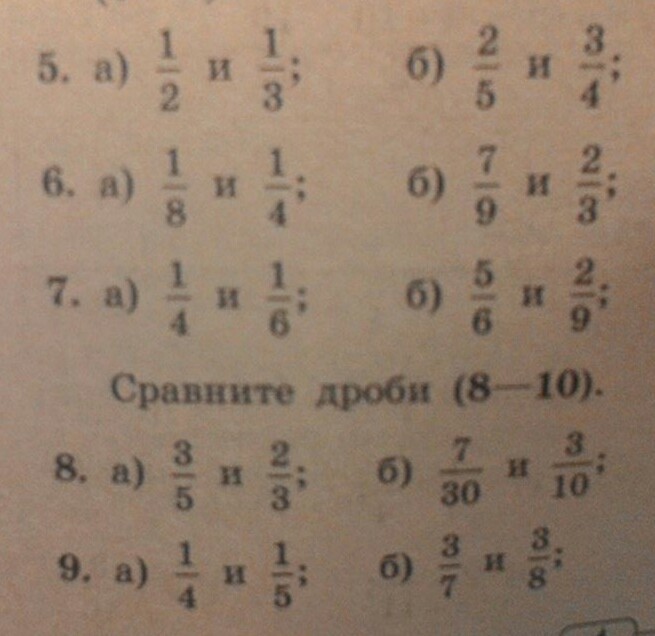 7. 1/4 больше 1/6, так как если привести к общему знаменателю будет 3/12 больше 2/12