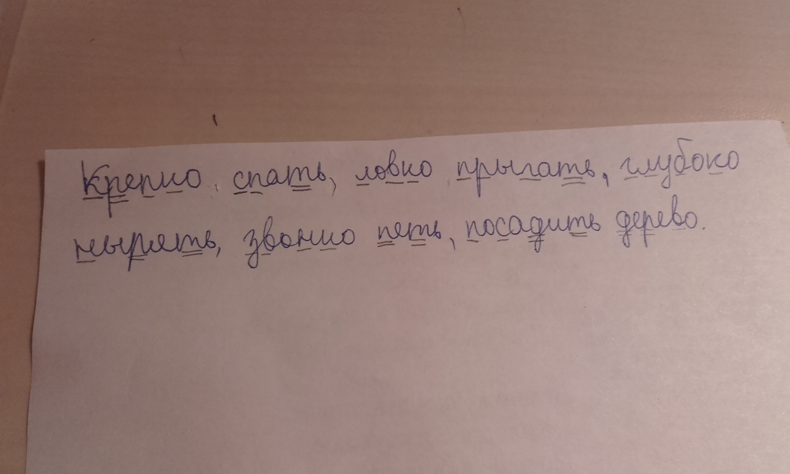 Подчеркни одной чертой твёрдые согласные, двумя чертами- мягкие. Крепко спать, ловко прыгать, глубоко нырять, звонко петь, посадить дерево.