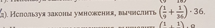 (1/9+1/36) *36=1/9 домнажаем на 4. 1/9 следовательно получается 4/36 далее 4/36+1/36=5/36*36/1=5