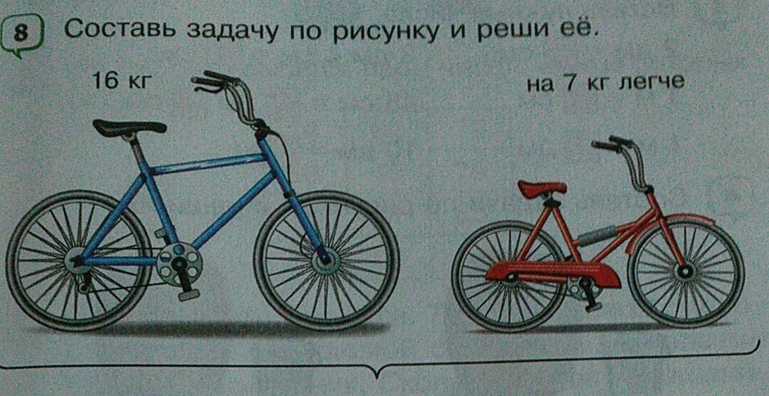 Синий велосипед весит 16 кг, а красный на 7 кг легче. Сколько весит красный велосипед?
