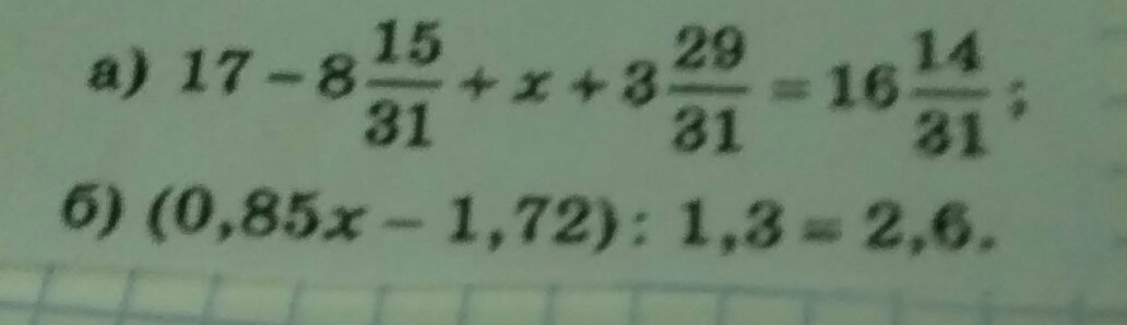 Второе: (0,85х-1,75)÷1,3=2,6; 0,85х-1,72=3,38; 0,85х=5,1; х=6