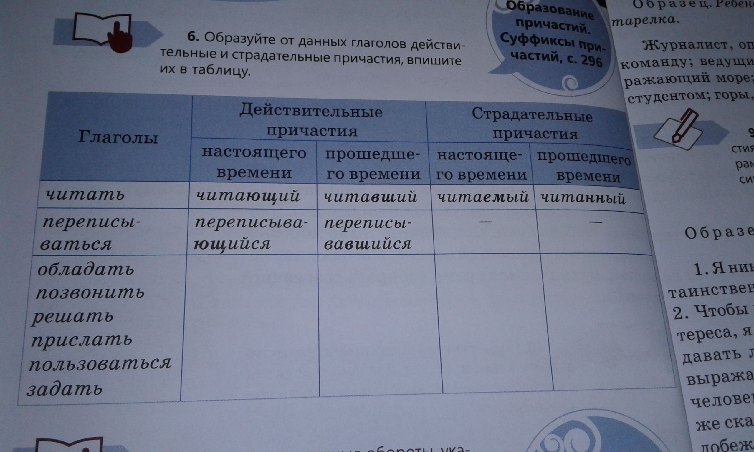 образуйте от данных глаголов действительные и страдательные причастия, впишите их в таблицу