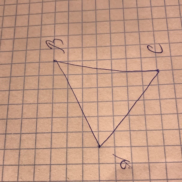 Тебе надо начертить треугольник не развёрнутый и назвать его АВС на пример как у меня