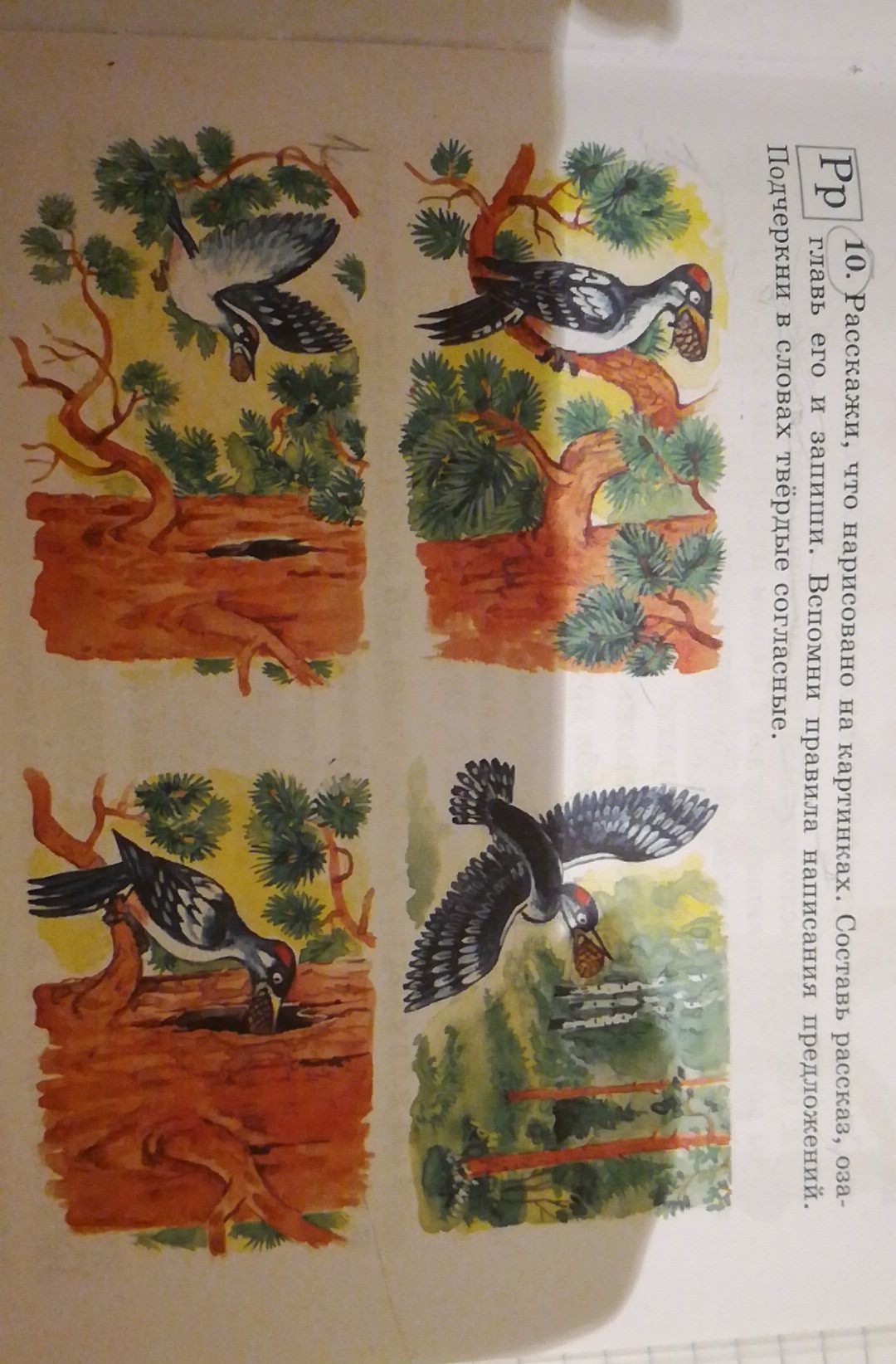 расскажи,что нарисовано на картинах.Составь рассказ,озаглавь его и запиши.Вспомни правила написания предложений.Подчеркни в словах твердые согласные.
