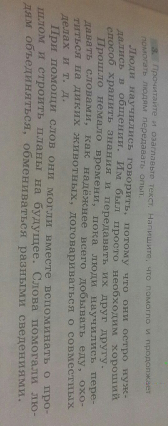 прочитайте и Озаглавьте текст напишите что помогло и продолжает помогать людям передавать опыт