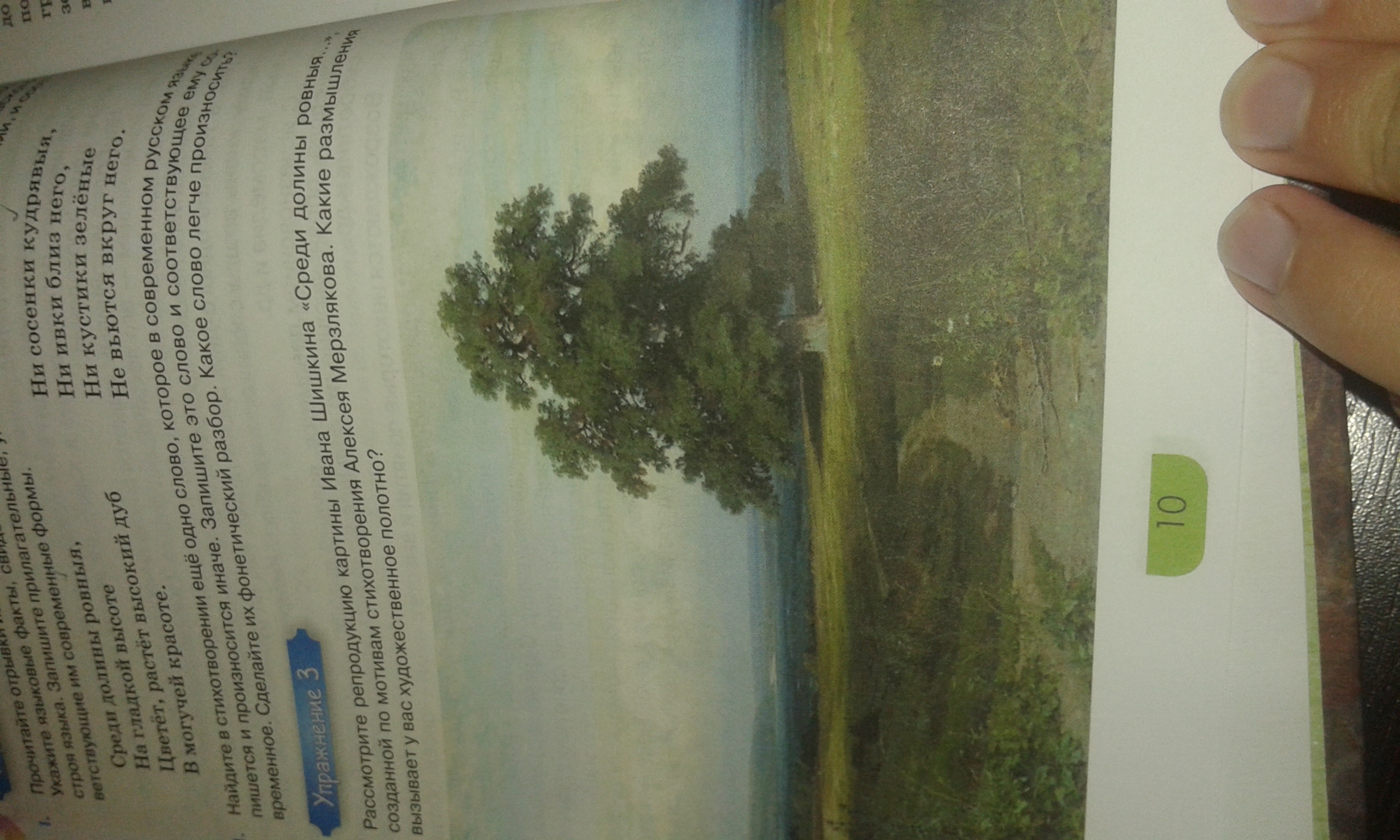 В этой картине используются краски такие как: синий ,голубой ,тёмно зелёный ,светло зелёный ,коричневый, жёлтый.Я считаю что автор хотел передать чувства:грусть и одиночество.Передал он одиночество тем что в большом и обширном поле стоит один, одинокий и могущественный дуб