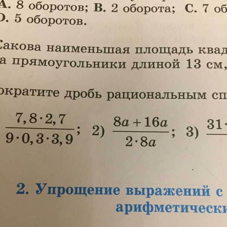 2) В верхней части вынести за скобку 8. 8(а+2а). Потом представить 8а внизу как 8*а, сократить наверху и внизу 8. Затем раскрыть наверху скобки, получается а+2а=3а=3*а. Сократить а и остается 3/2 =1,5