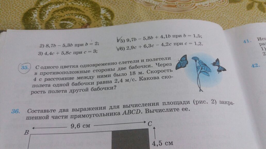 3)8,4 ÷ 4 = 2,1 - скорость второй бабочки