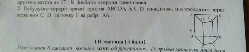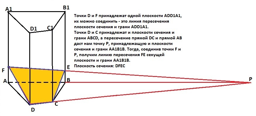 Построить сечение призмы через точки D и C,и точку F на ребре AA1