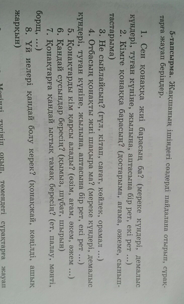 5. Мер өз достарымды, ата-анамның достарын барлығымыз бірігіп қарсы аламыз.