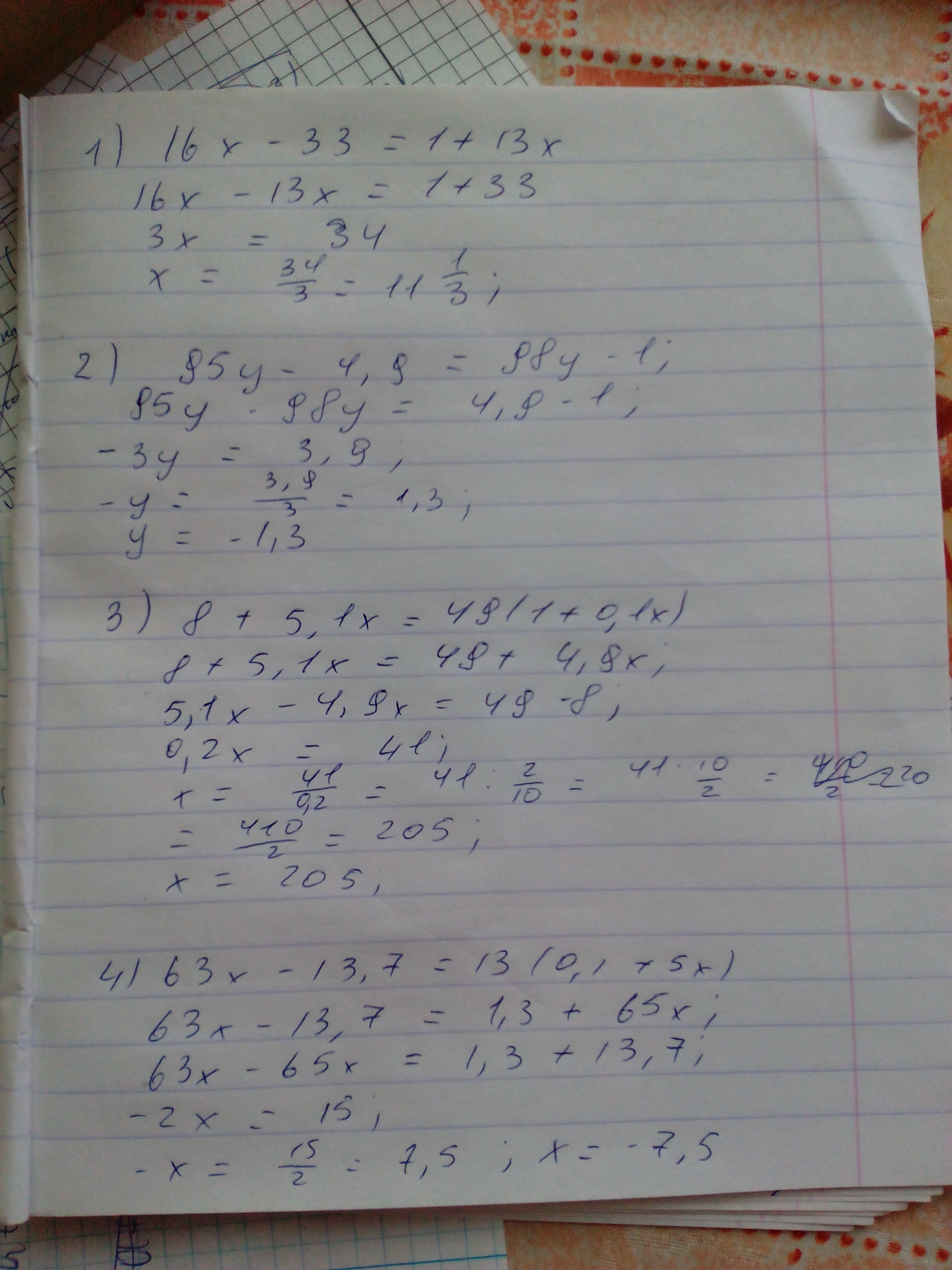 4) 63x - 13,7 = 13( 0,1 +5x )