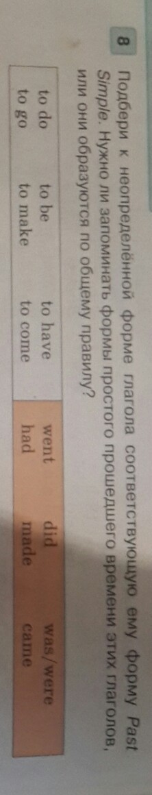 to make-made, to come-came, to be-was\were, to have-had, to do-did, to go-went.