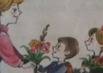 Было первое сентября,я собирался в школу в первый раз.Мама говорила ,что мне там будет интересно,а я с заворожённый и глазами смотрел как она упаковывает цветы.Придя на линейку ,с нами представилась наша учительница,она была такая красивая,в ухоженном красном костюме.Я не удержался и со своим новым другом Петей решил подарить ей эти цветы,они были такие яркие.Она улыбнулась мне в ответ и сказала спасибо в ответ.На моих щеках появился лёгкий румянец,я был рад ,что мы познакомились!