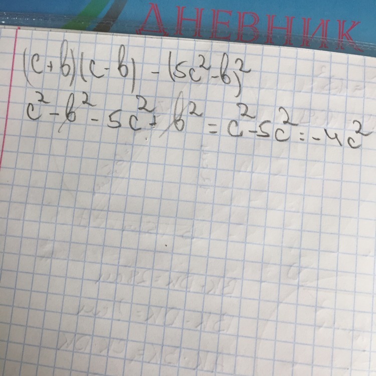 (c+b)(c -b)-( 5c2-b2)= c2 -b2 -5c2 +b2= c2- 5c2= -4c2