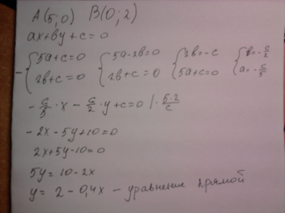 А(5;0) - подставим координаты точки и значение в в уравнение, получим