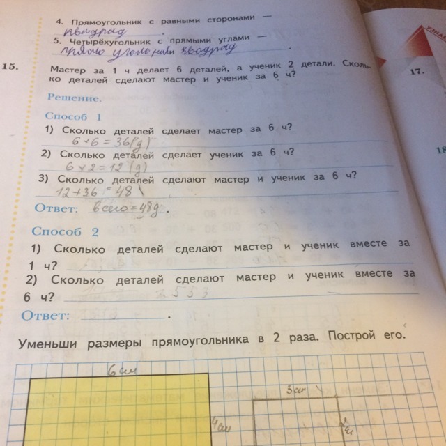 мастер за 1 час делает 6 деталей,а ученик 2 детали.сколько деталей сделают мастер и ученик за 6 ч?НАДО ПОМОЧЬ СО ВТОРЫМ СПОСОБОМ