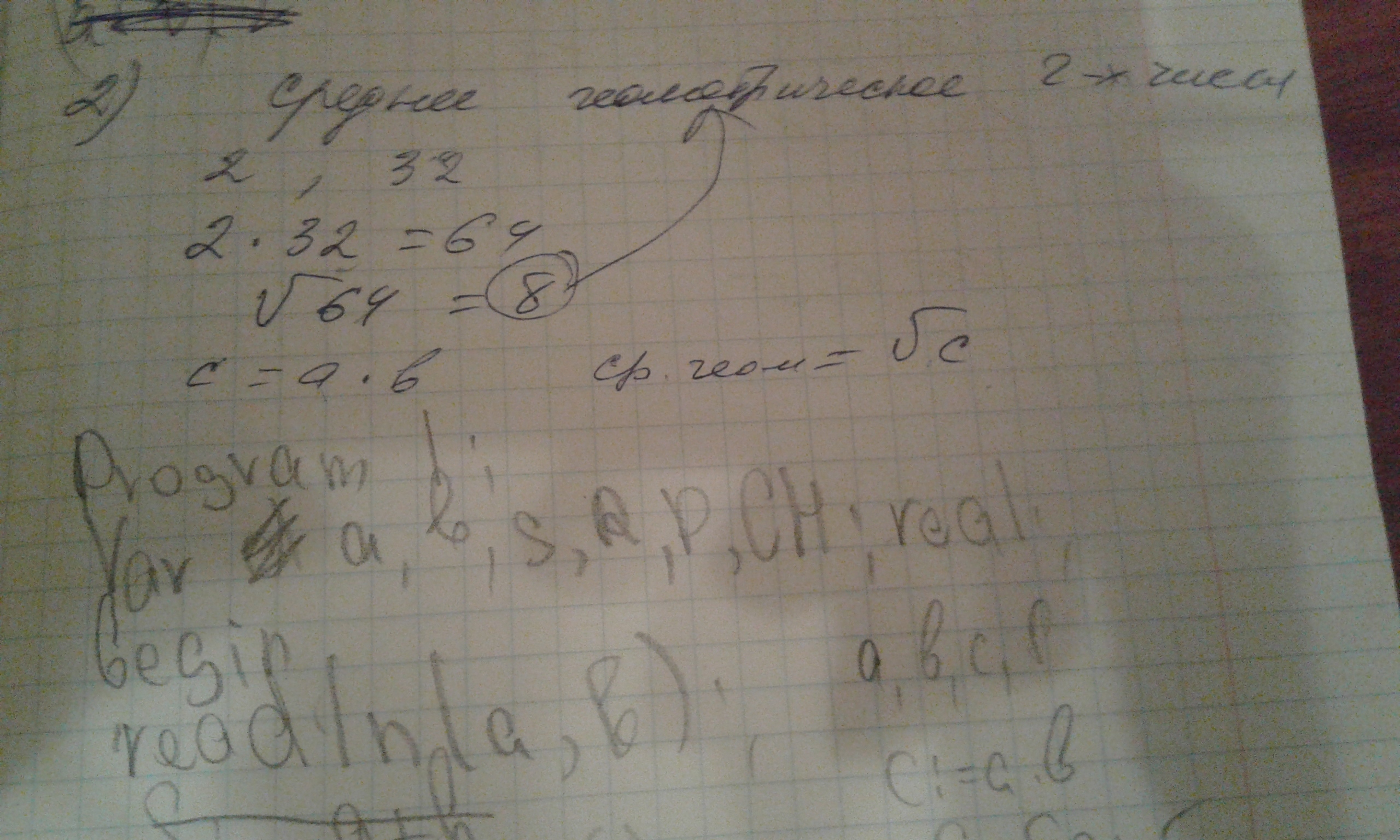 НАДО НАЙТИ СРЕДНЕЕ ГЕОМЕТРИЧЕСКОЕ 2-Х ЧИСЕЛ В ПРОГРАММЕ,,ПАСКАЛЬ,,
