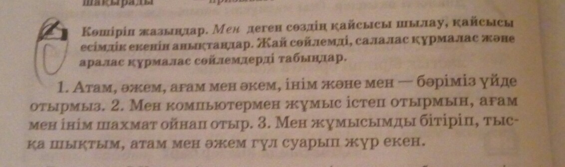 Ағам МЕН əкем слово мен тут шылау інім жəне мен тут есімдік. Мен компьютермен ... тут есімдік ағам мен інім тут шылау.мен жумысымды тут слово мен есімдік атам мен əжем тут шылау.