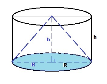 Конус вписан в цилиндр. Значит, у них общее основание и одинаковая высота. Формулы объёма цилиндра и конуса отличаются только коэффициентом 1/3 для объёма конуса, значит, объём конуса в 3 раза меньше объёма цилиндра.