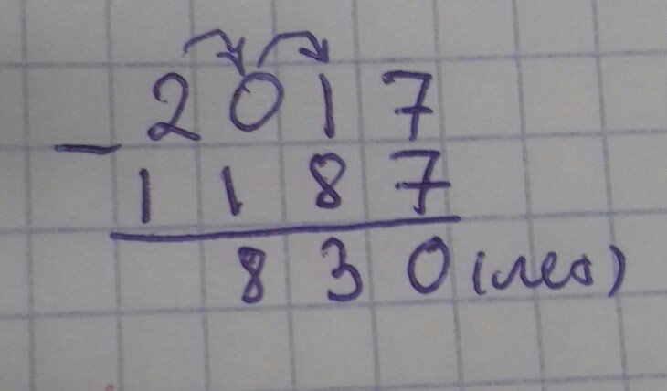 1)2017-1187=830 (лет) прошло с момента первого упоминания о Москве.