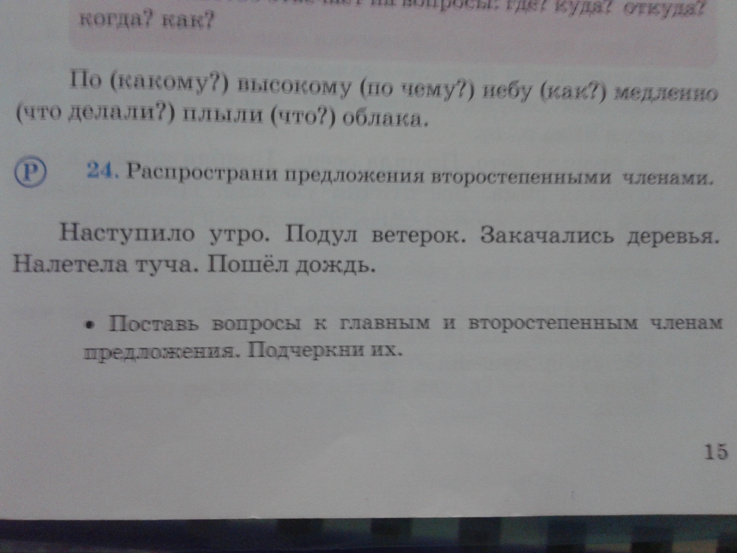 Наступило прекрасное и красивое утро Подул свежий ветерок Закачались большие стройные деревья Налетела огромная черная туча Пошел Мелкий дождь на лес