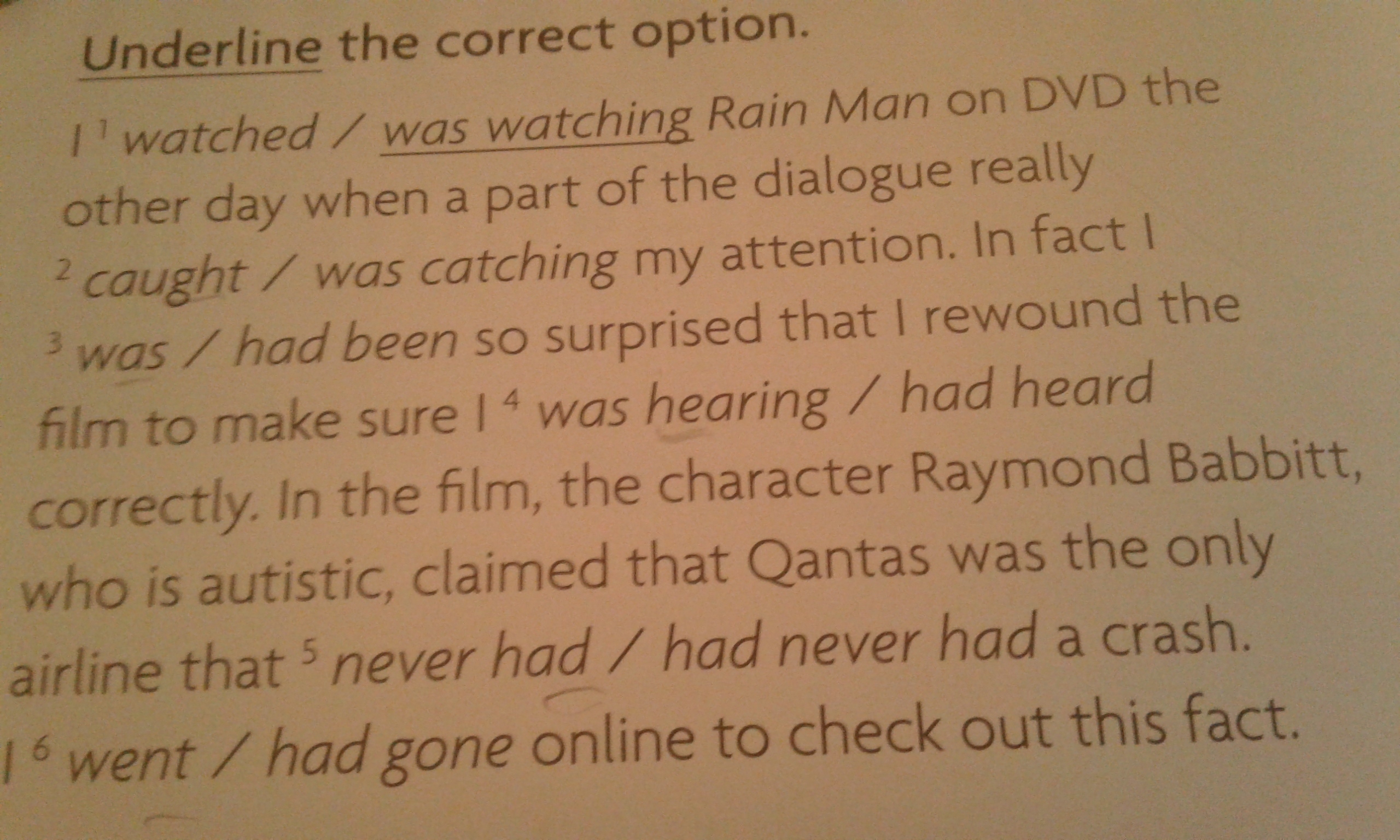 Watched, caught, was, had heard, never had, went (первая стр)