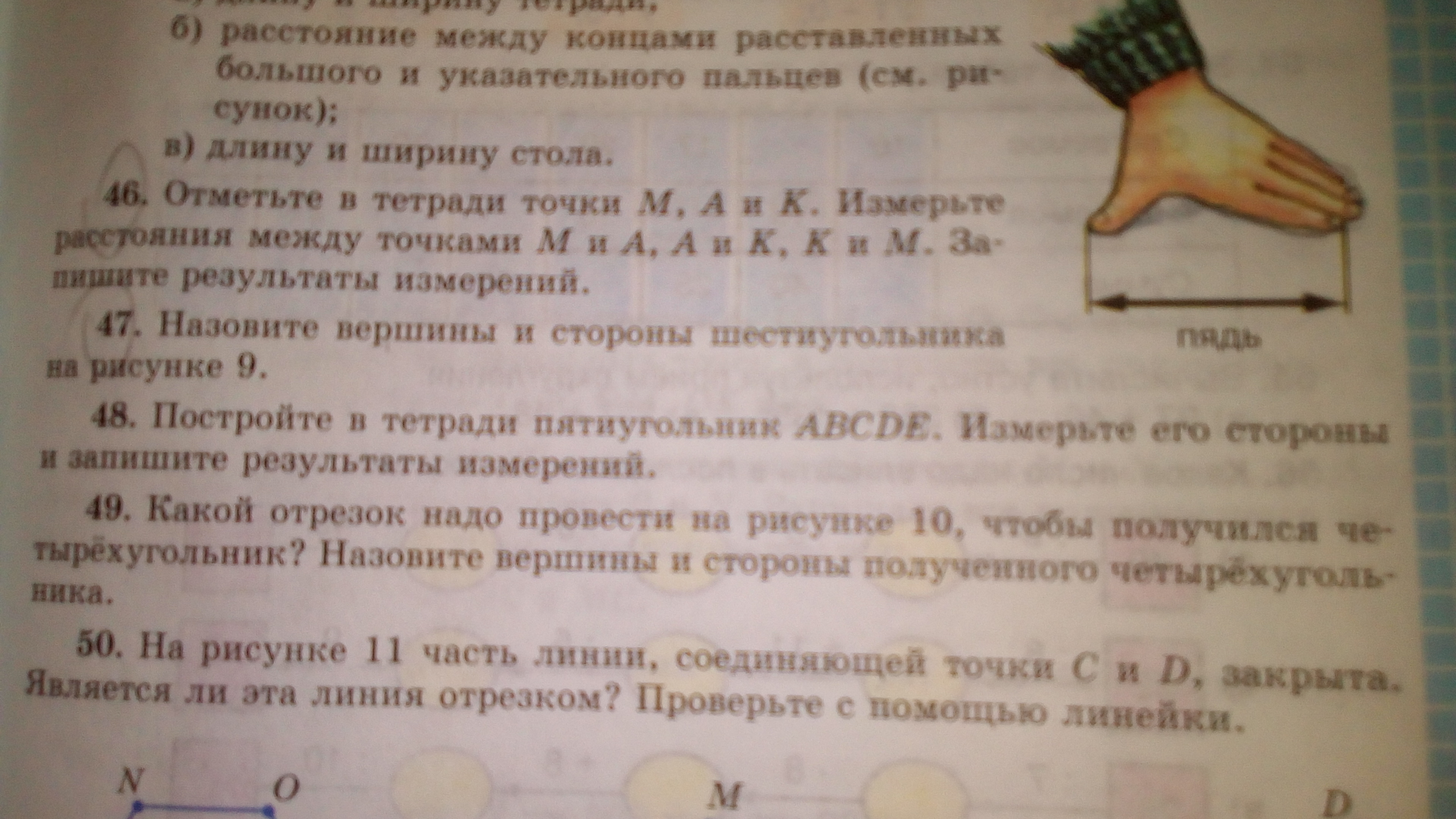 46. нарисуй в тетради 3 точки и поставь над ними буквы А М К и измерь растояния не обращая внимания на другую точку, и запиши в тетради измерения и сами точки (незабудь написать сами буквы