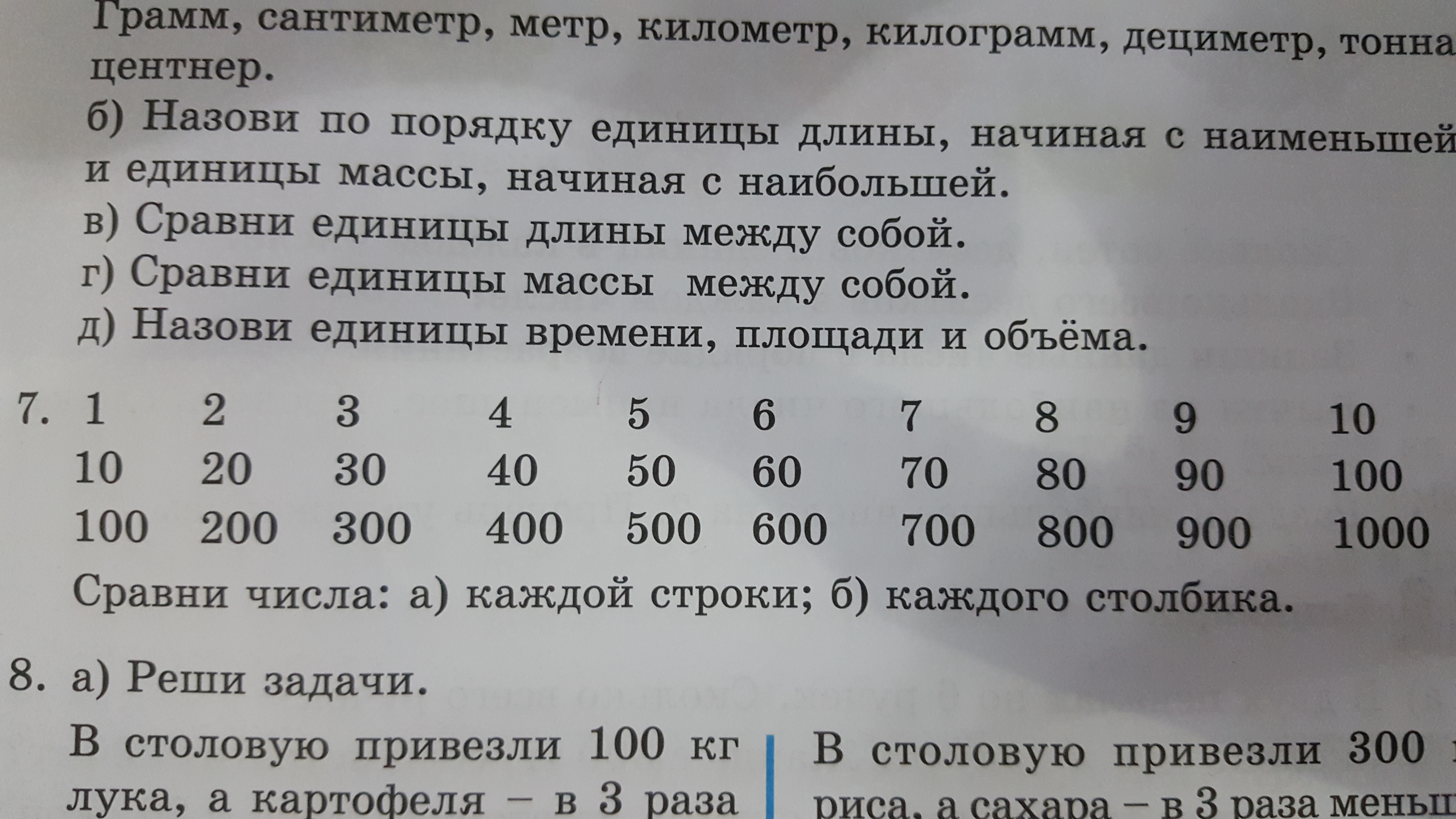 в каждом столбце следующее число больше предыдущего в 10 раз