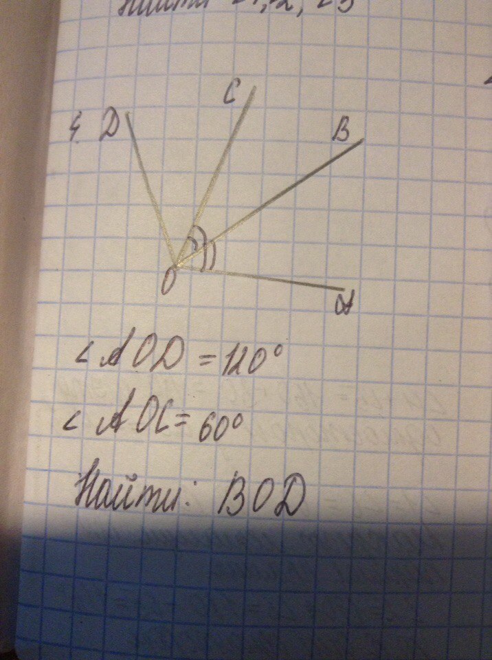 АОД - АОС = 120 - 60 = 60 - угол ДОС