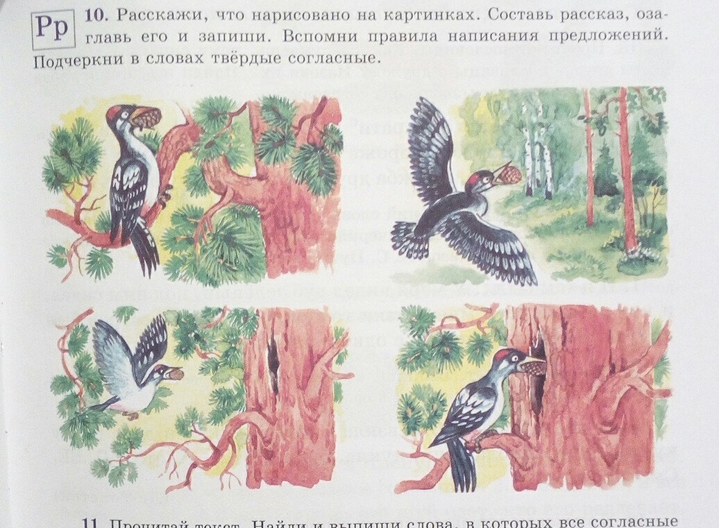 Дятел решил помочь белкиным детям и взял в шишку. Летит он летит и прилетел к ним в дупло и сунул клюв и отдал шишку.