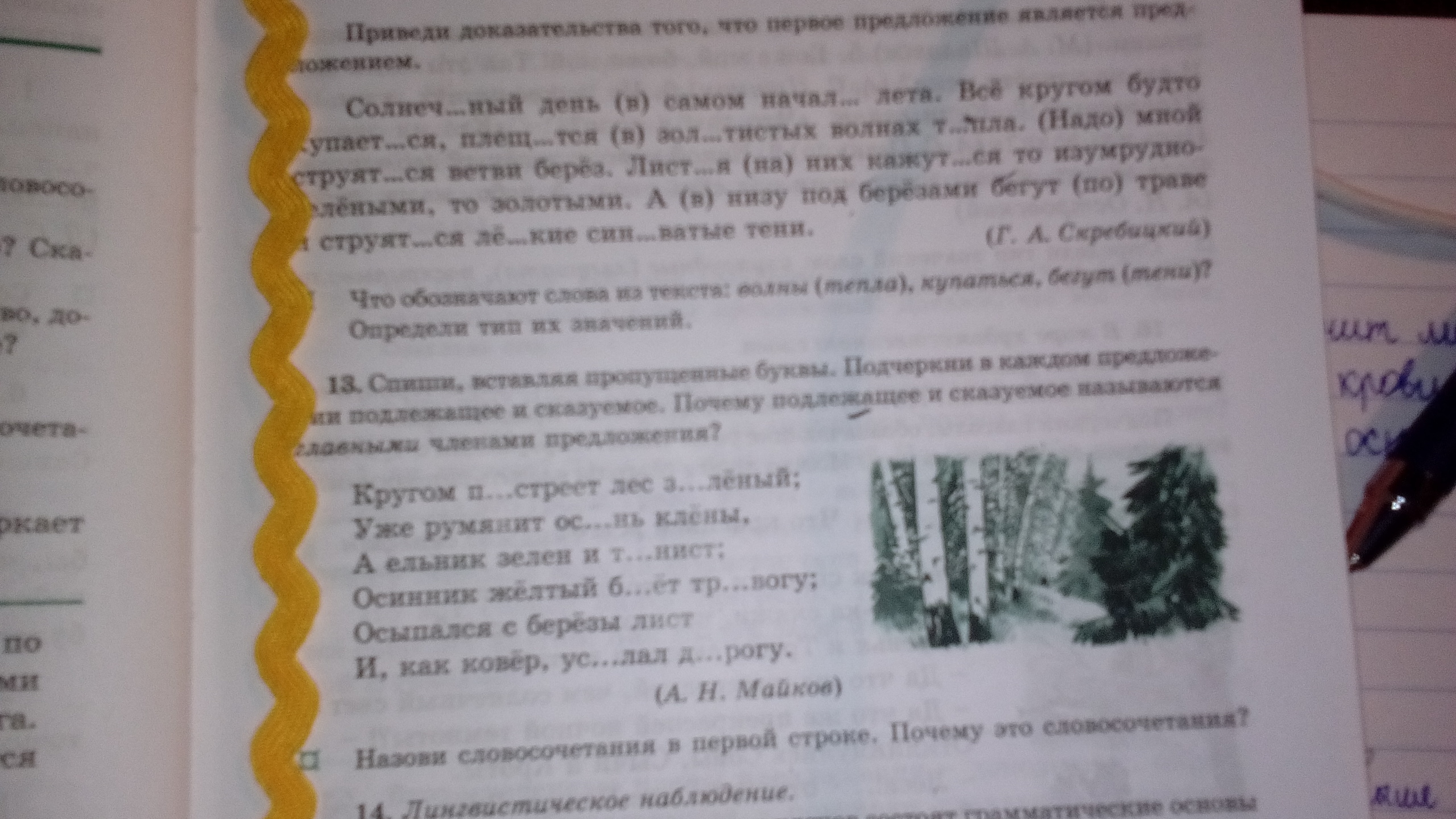 Пестреет, румянит, бьёт, осыпался, устлал.
