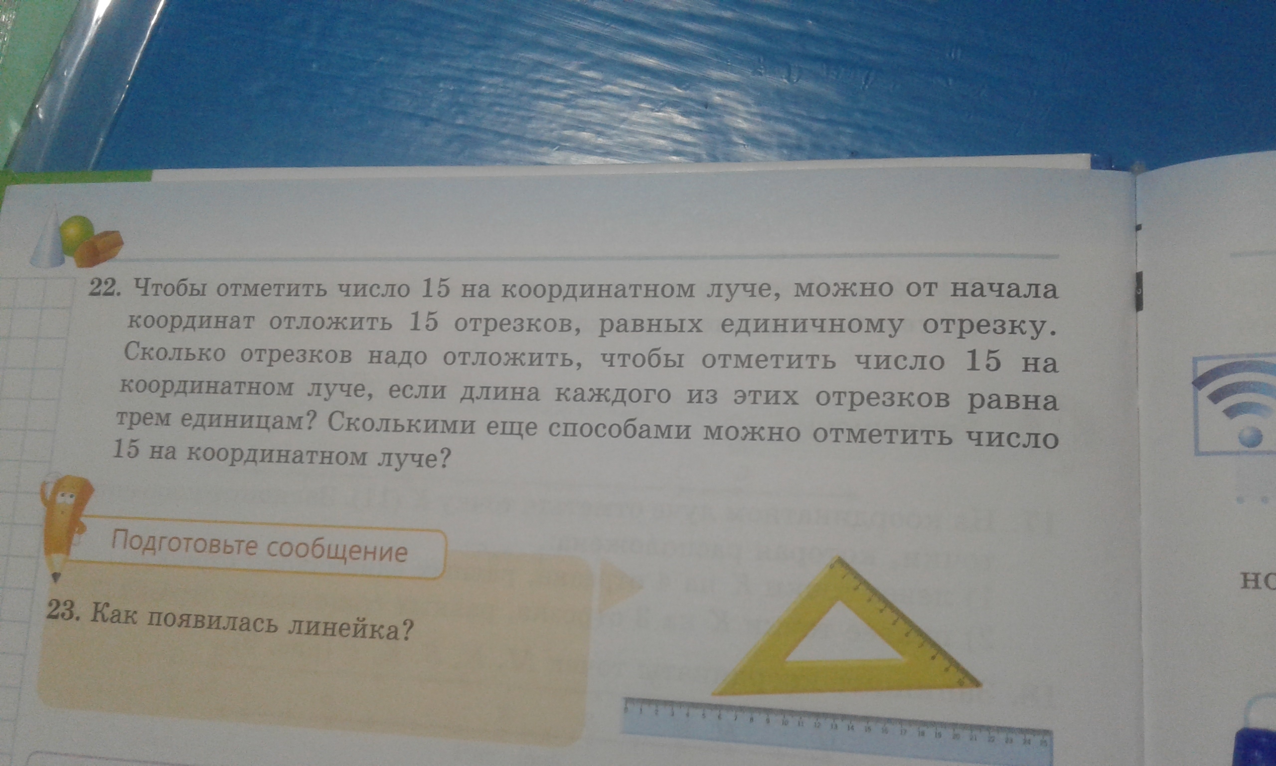 15/3=5 отрезков надо отложить,если отрезок=3 единицам(3*5=15)