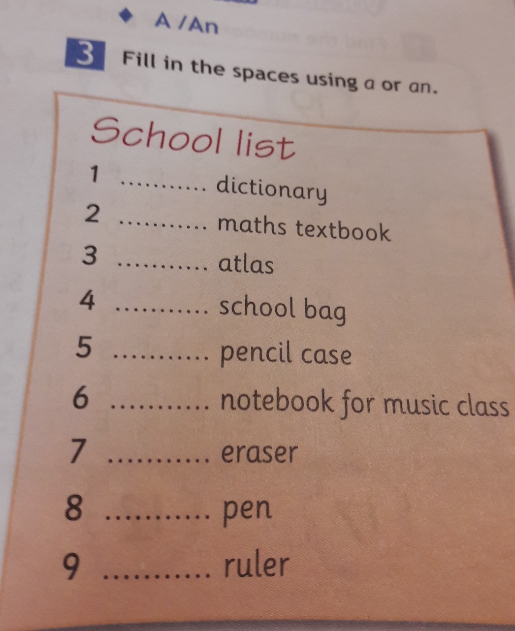 1. a 2.a3,an 4.a 5.a 6.a 7.an 8.a 9.a