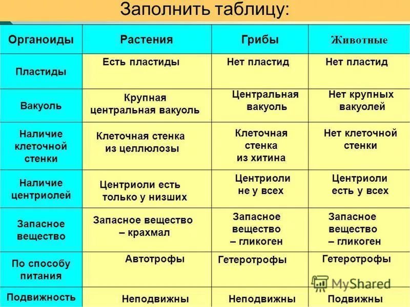 Мы такие таблицы составляли на уроке, просто убери грибы из первой, а остальное все можешь написать