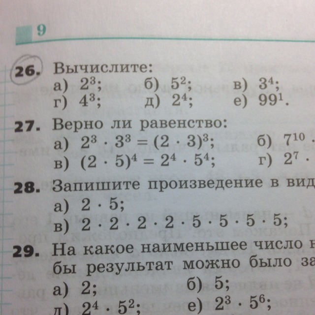 1)2×2×2=8 2)5×5=25 3)3×3×3×3=81 4)4×4×4=64 5)2×2×2×2=16 6)99=99