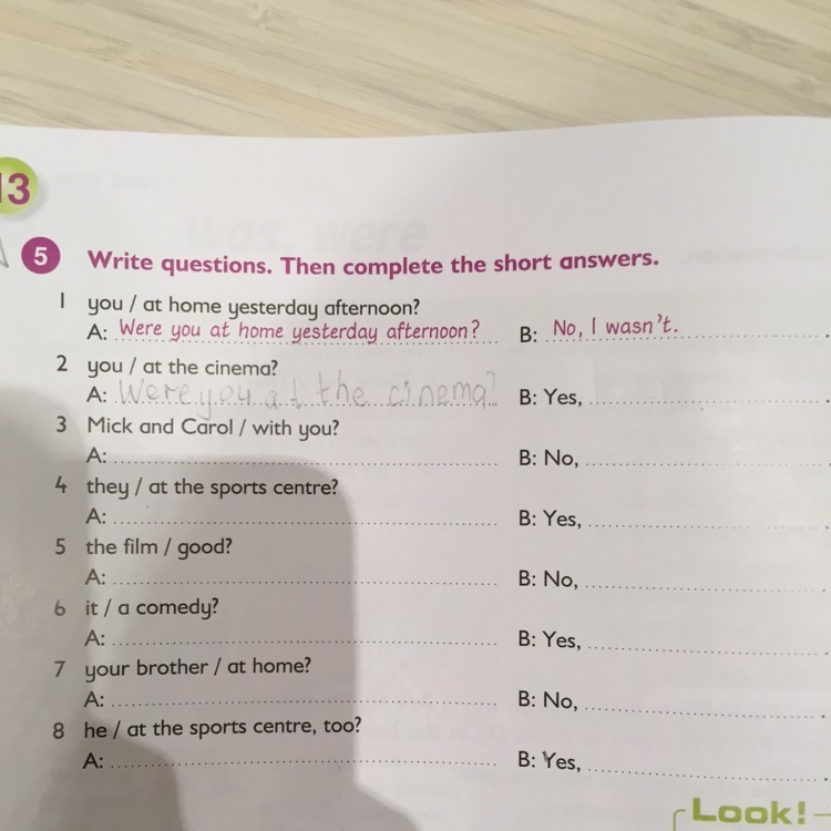 7 Was your brother at home? No, he wasn't.