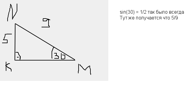ж)В прямоугольном треугольнике MNK угол К равен 90 градусов ,угол М 30 градусов ,NK 5см,MN 9 см