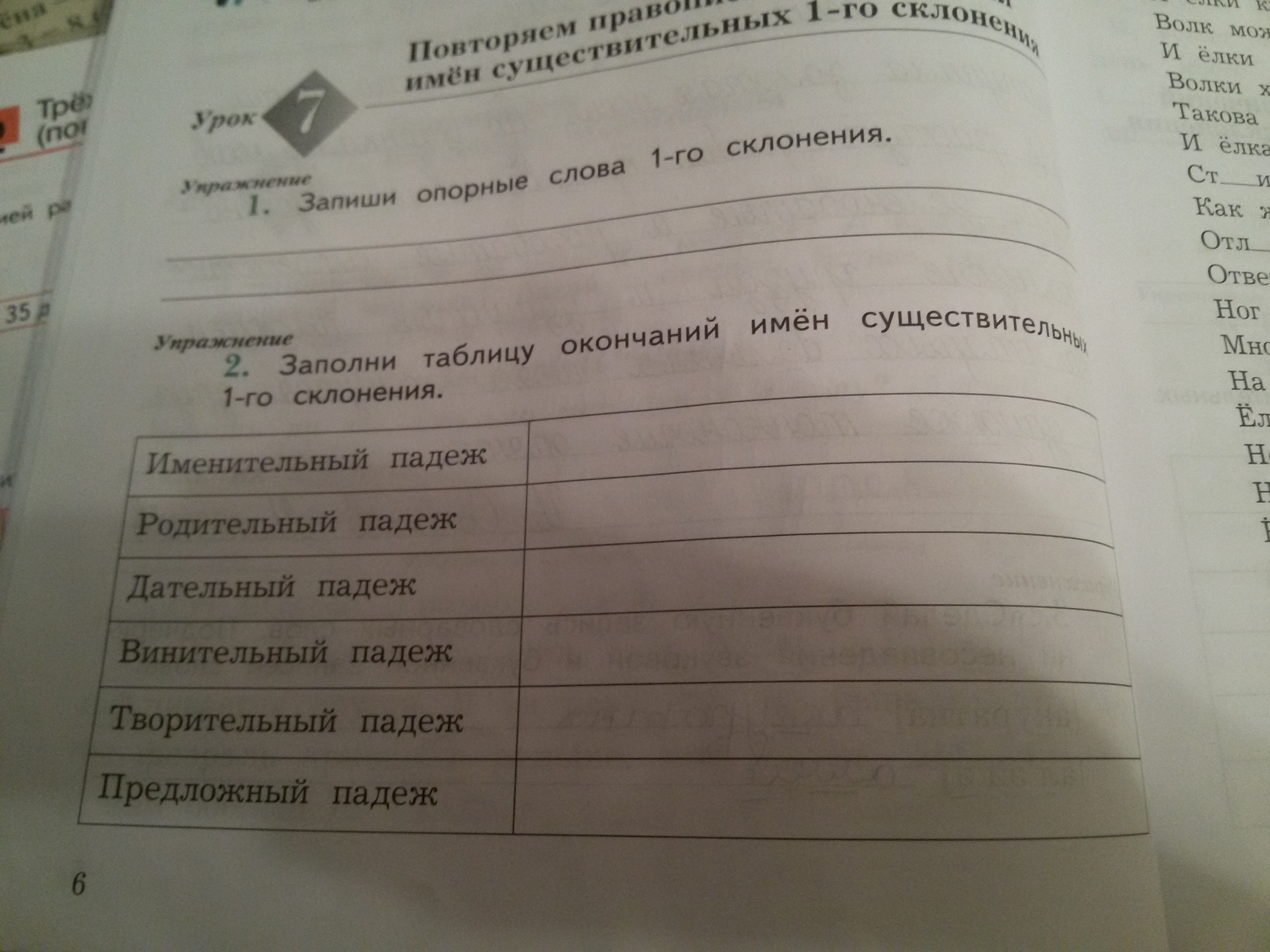 1)стена,голова,земля 2)стена,стены,стене,стену,стеной,о стене. голова,головы,голове,голову,головой,о голове,земля,земли,земле,землю,землёй,о земле.