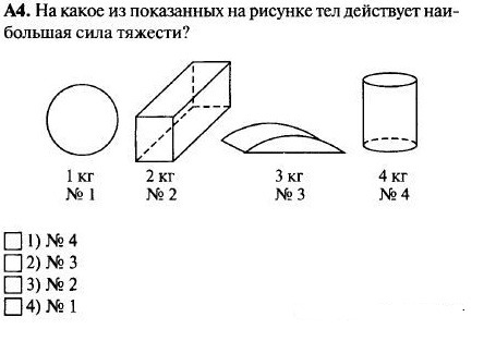 наибольшая сила тяжести будет у прямоугольника, т. к. у него больше форма чем у других фигур