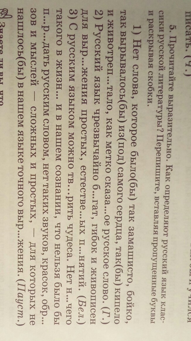 прочитайте выразительно. как определить русский язык классики литературы.? перепищите вставляя пропущенные буквы и расскрываю скобки